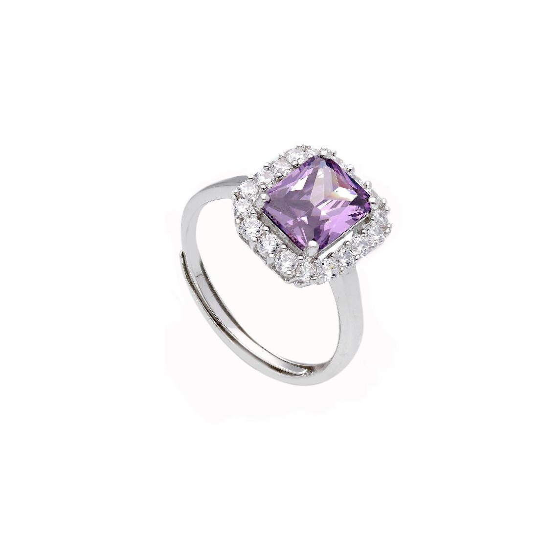 Anello in argento 925/ooo zirconia cubica e cristallo artificiale viola