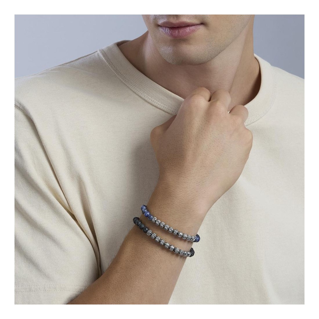 KIDULT 831135 Bracciale in acciaio 316L nylon sodalite