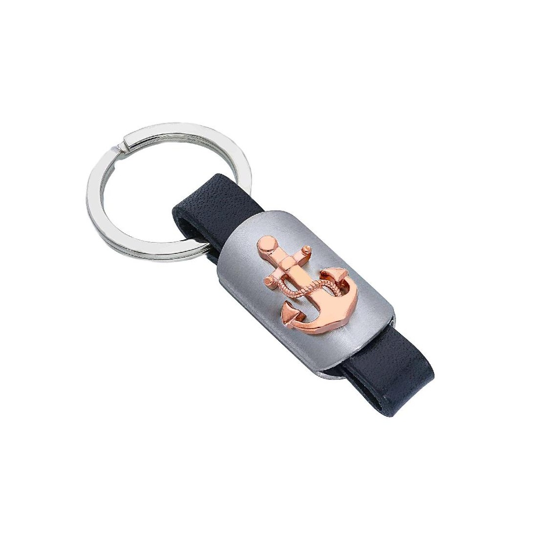 258608 - Portachiavi in acciaio e pelle con ancora